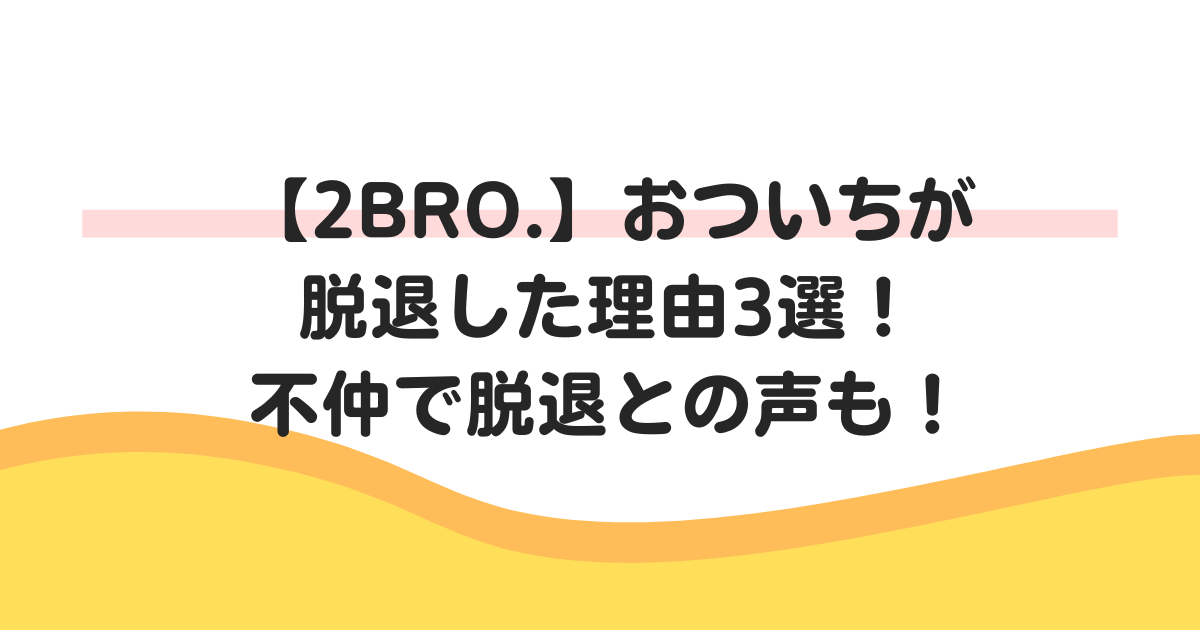 2025年11月1日に2BRO.からおついちが脱退することが発表され話題です。