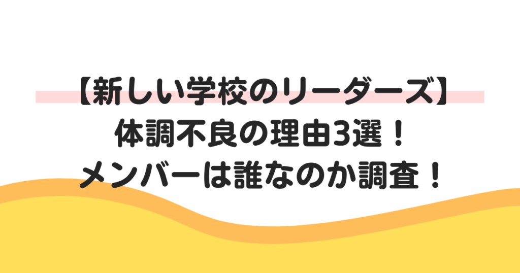 【新しい学校のリーダーズ】体調不良の理由3選!メンバーは誰なのか調査!