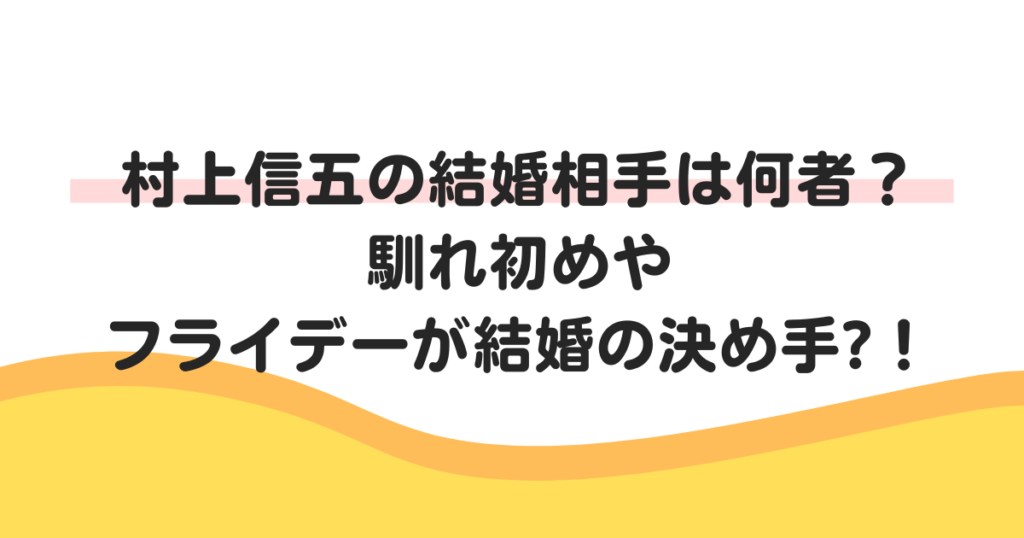 村上信五の結婚相手は何者?馴れ初めやフライデーが結婚の決め手との噂も!