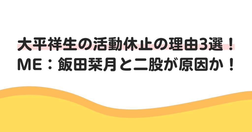 大平祥生の活動休止の理由3選!ME:飯田栞月と二股が原因か!