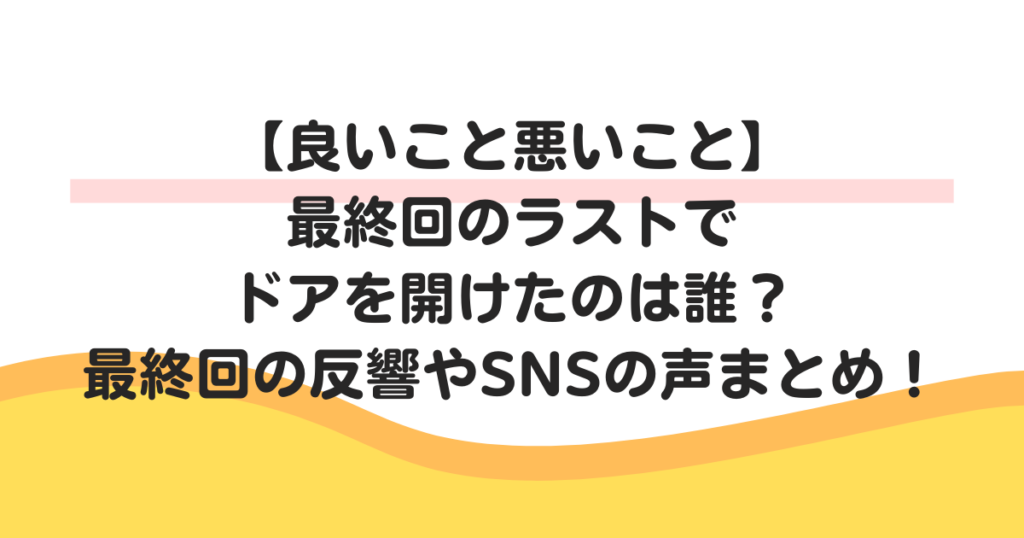 【良いこと悪いこと】最終回のラストでドアを開けたのは誰?最終回の反響やSNSの声まとめ!