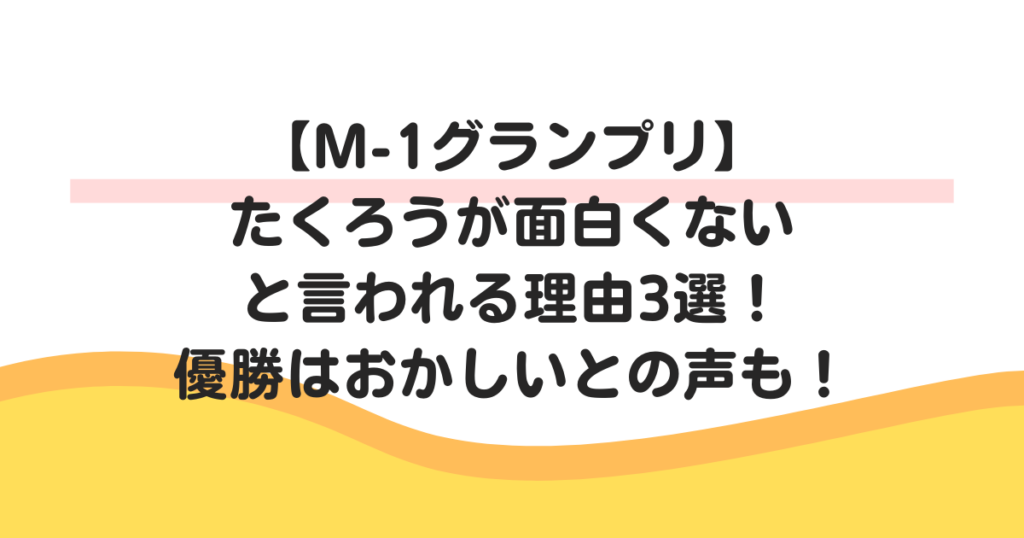 2025年12月21日に放送されたM-1グランプリで、初出場の「たくろう」が優勝し話題になっています。 SNSでは「面白くない」や「優勝はおかしい」といった優勝するほど面白かったの?という声が多くみらています。 年々レベルが落ちてきている気がする、、、... -