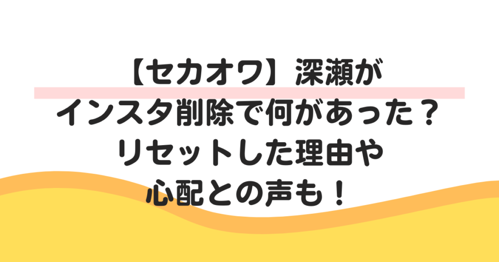 2025年11月14日にセカオワの深瀬さんがインスタを削除し話題になっています。 過去に深瀬さんはインスタの投稿を全てリセットしたことがありました。 しかし、今回はインスタのプロフィール画像までもが真っ白になっています。 一体何があったのでしょうか... -