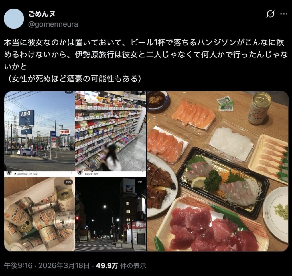 2026年3月18日にSNSでハンジソンさんの彼女との匂わせ投稿が話題になっています。