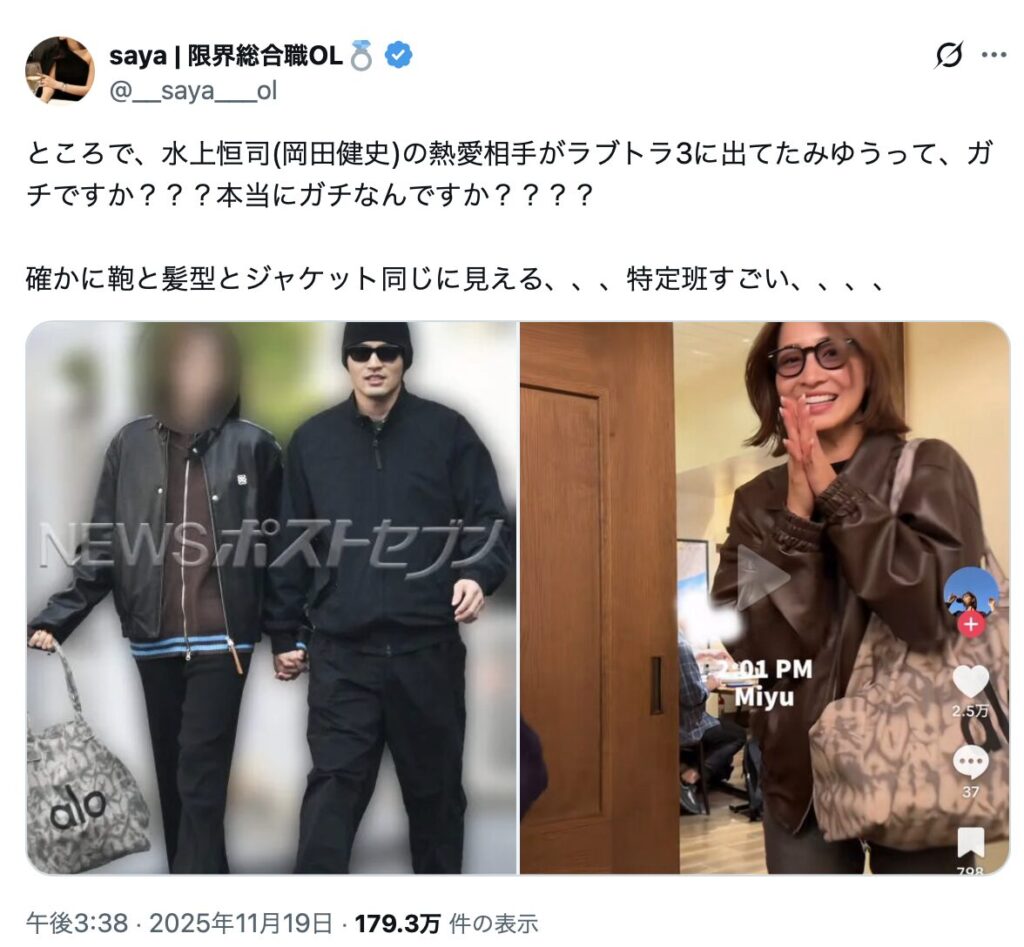 その年上彼女がSNSではラブトラみゆうではないかと言われています。