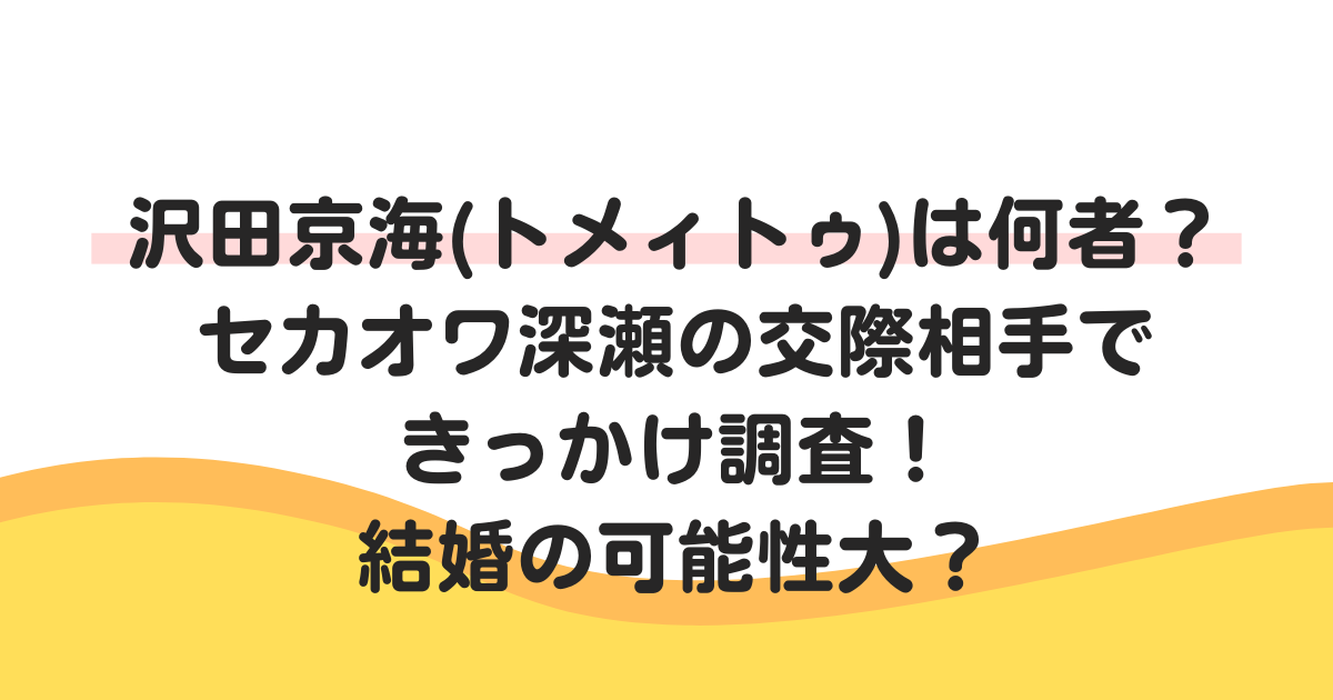 そこで今回はセカオワ深瀬の交際相手と噂される沢田京海さんとは何者なのか調査しました。